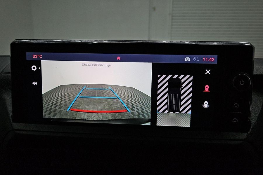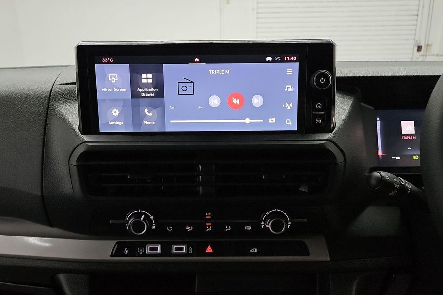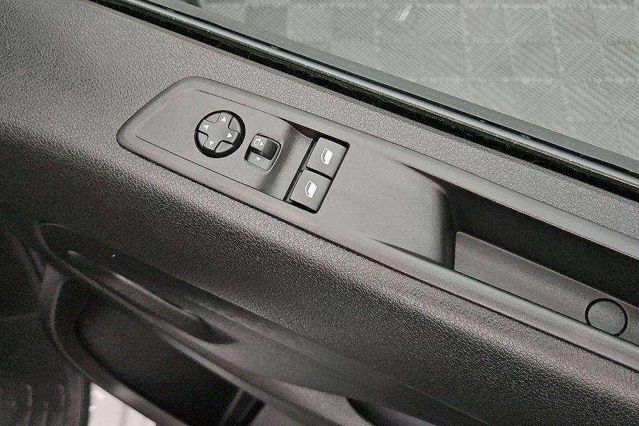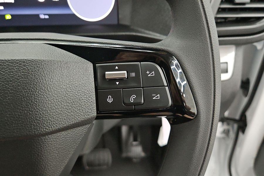 Comfort features include leather-wrapped steering wheel with audio controls, 6-way adjustable driver seat with lumbar and armrest, dual passenger bench with under-seat storage, heated driver seat, heated steering wheel, heated electric folding mirrors, rain-sensing wipers, automatic halogen headlamps, front fog lamps and a 69L fuel tank.