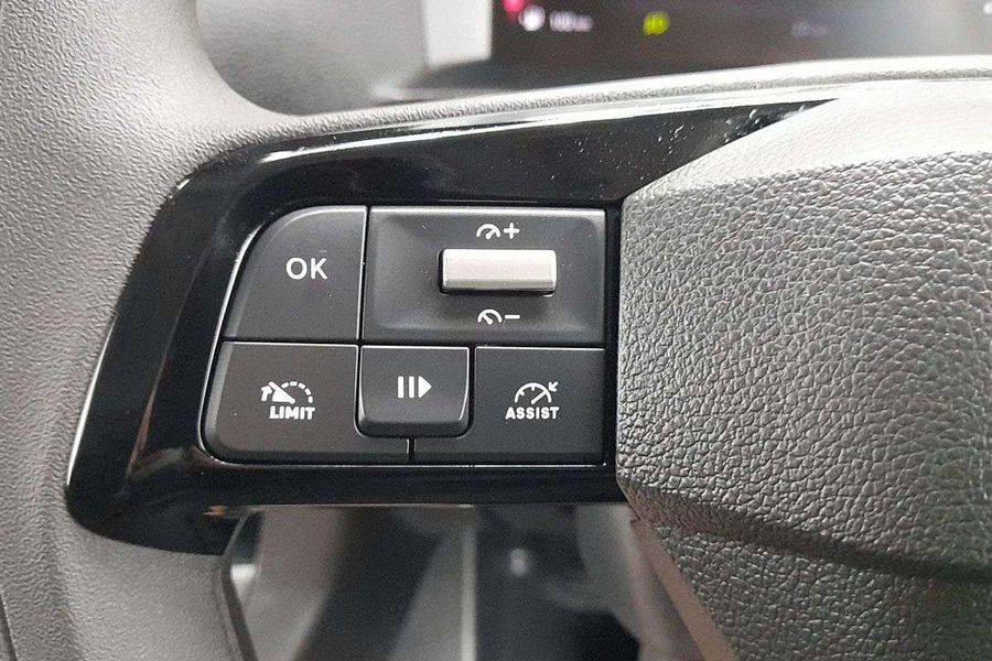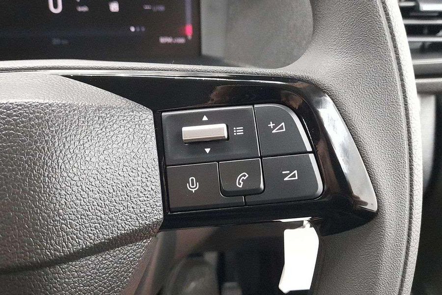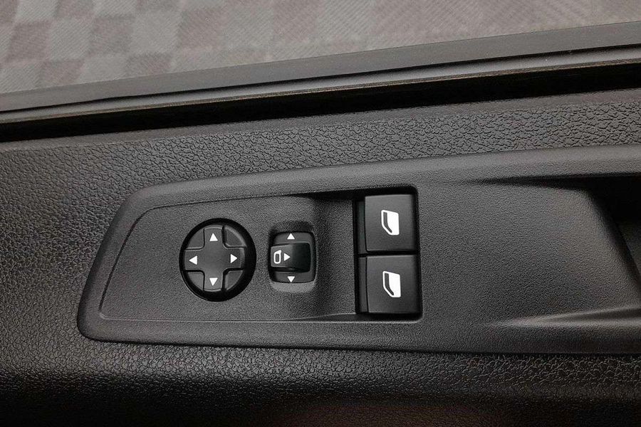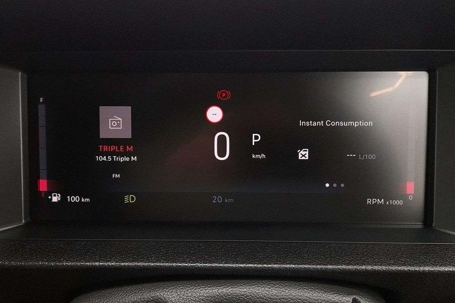 Comfort features include leather-wrapped steering wheel with audio controls, 6-way adjustable driver seat with lumbar and armrest, dual passenger bench with under-seat storage, heated driver seat, heated steering wheel, heated electric folding mirrors, rain-sensing wipers, automatic halogen headlamps, front fog lamps and a 69L fuel tank.