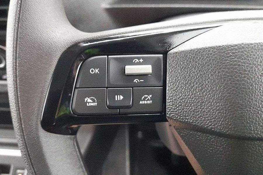 Comfort features include leather-wrapped steering wheel with audio controls, 6-way adjustable driver seat with lumbar and armrest, dual passenger bench with under-seat storage, heated driver seat, heated steering wheel, heated electric folding mirrors, rain-sensing wipers, automatic halogen headlamps, front fog lamps and a 69L fuel tank.