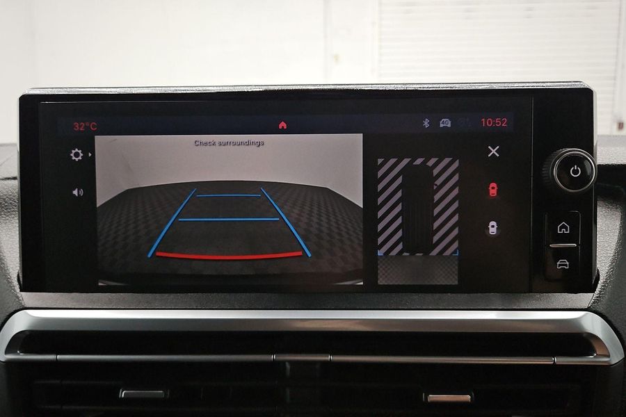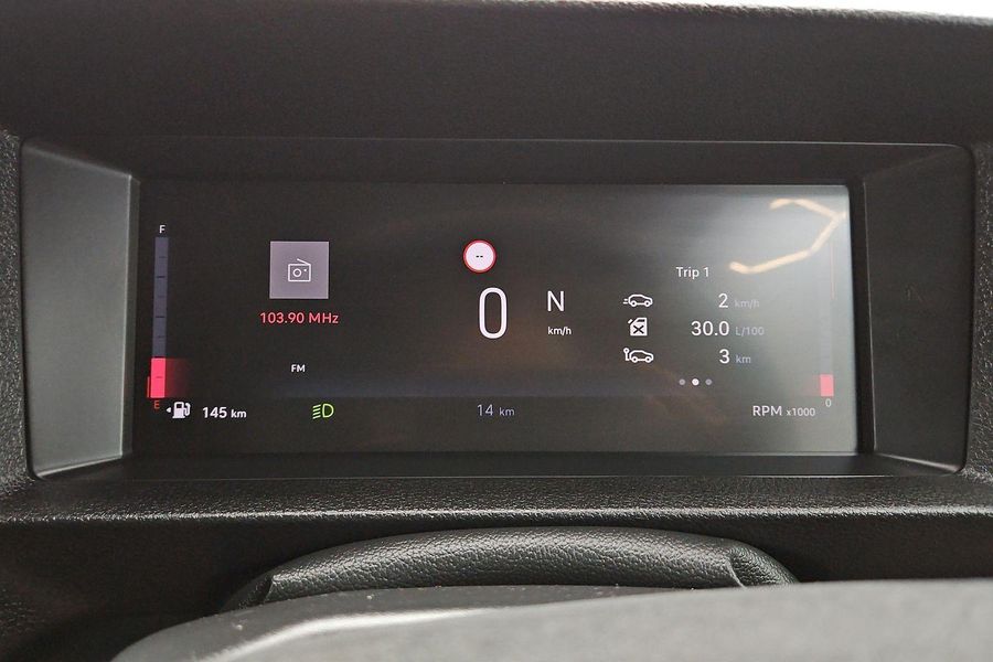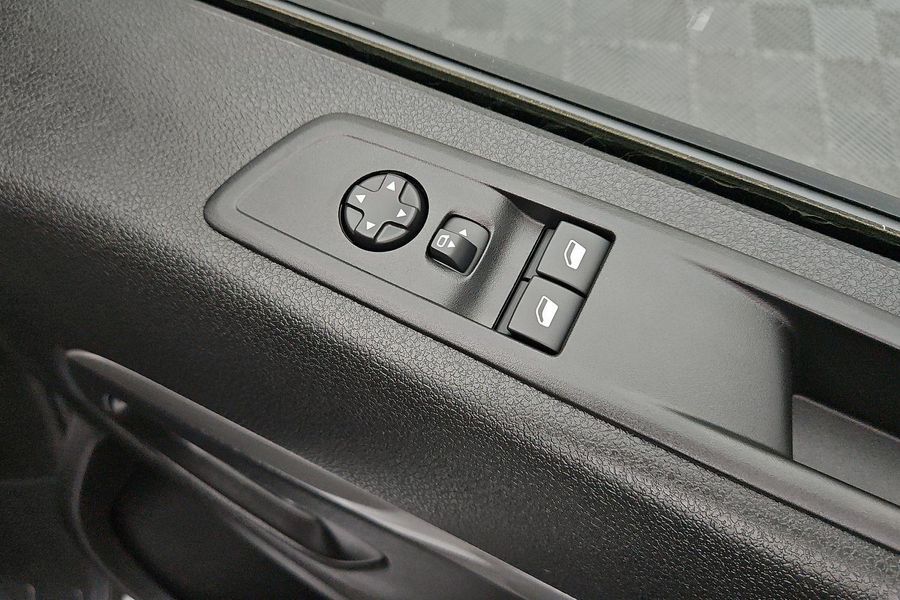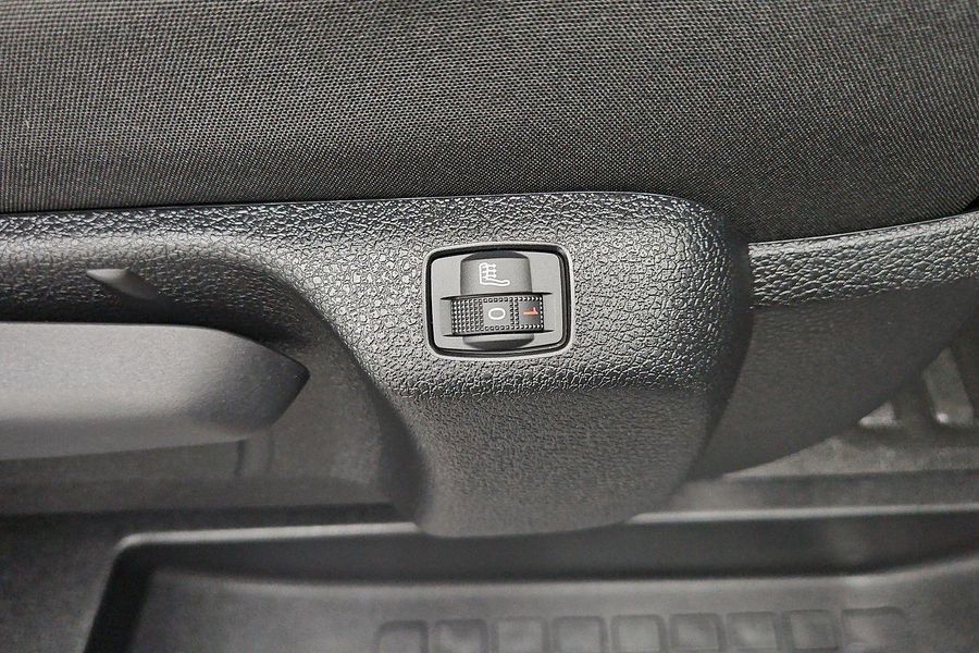 Comfort features include leather-wrapped steering wheel with audio controls, 6-way adjustable driver seat with lumbar and armrest, dual passenger bench with under-seat storage, heated driver seat, heated steering wheel, heated electric folding mirrors, rain-sensing wipers, automatic halogen headlamps, front fog lamps and a 69L fuel tank.