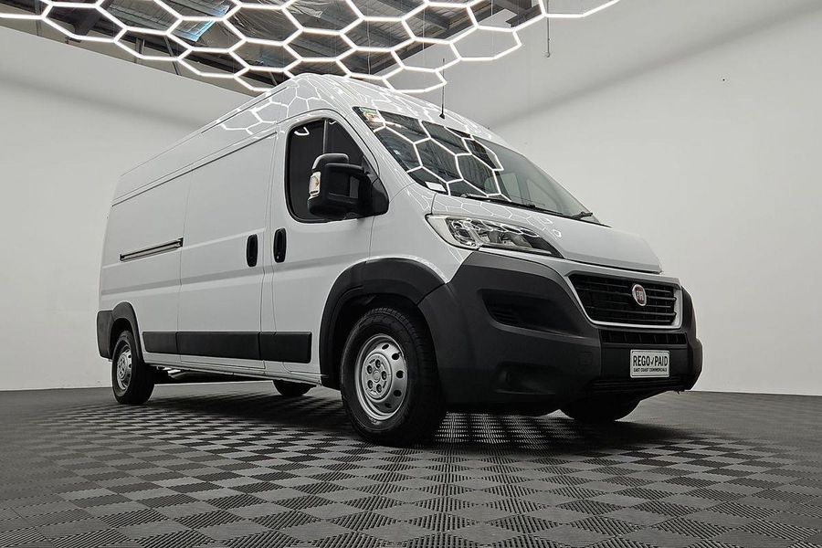 - For sale: 2019 Fiat Ducato Mid Roof Long Wheelbase! This versatile white van features a powerful 2.3L turbo diesel engine with 6-speed manual transmission, perfect for both personal and business use.